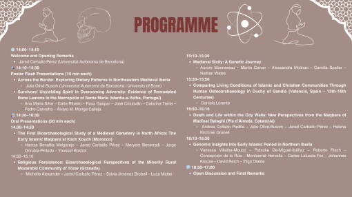 Aquest esdeveniment reuneix recerques recents en bioarqueologia, genètica, arqueologia funerària i història social en l’àmbit del Mediterrani islàmic medieval. Es discutiran casos d’estudi del Marroc, al-Àndalus, Sicília, València, Catalunya i el nord de la península Ibèrica, oferint noves perspectives sobre la convivència, l’adaptació i la resiliència en el passat.